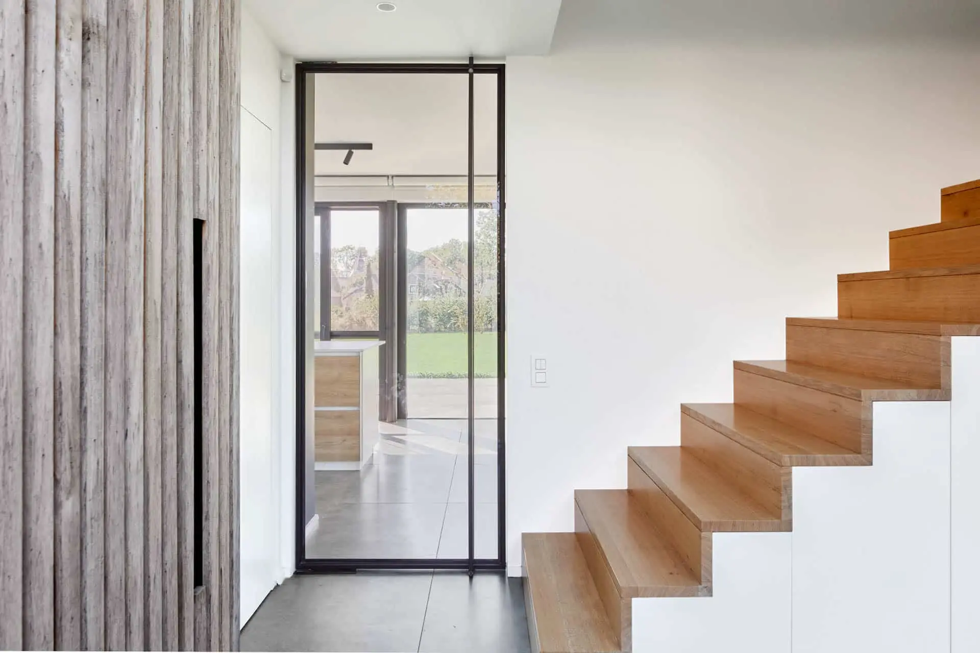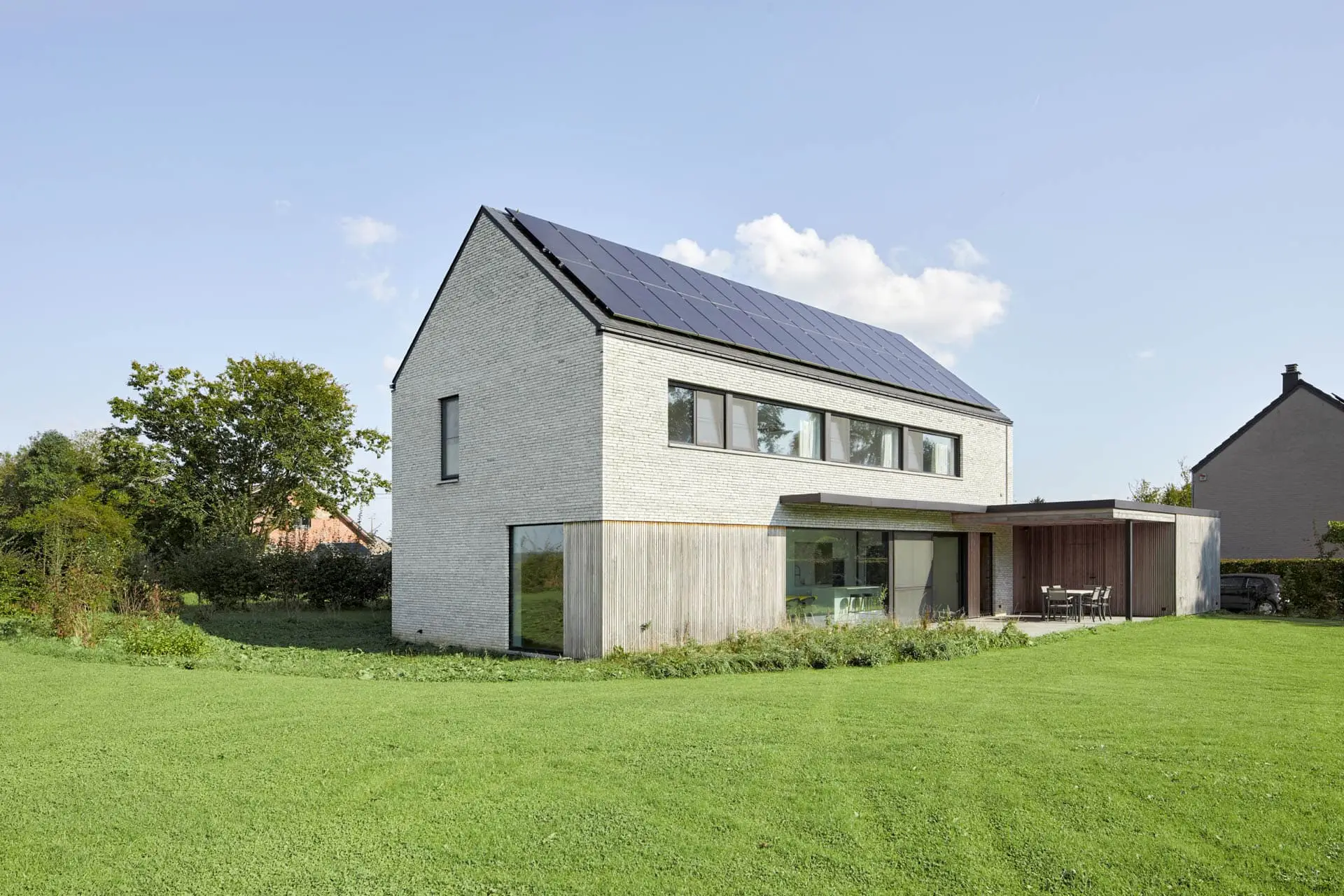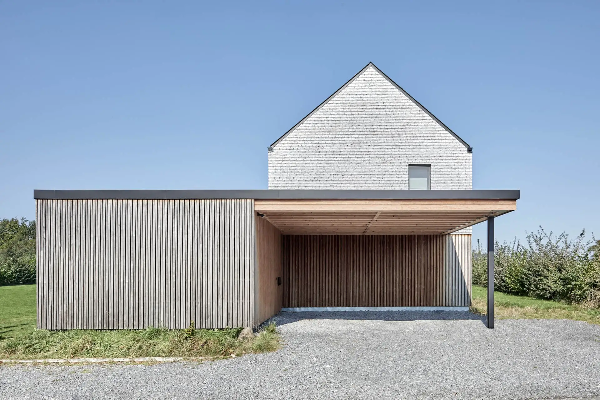 Brique collée grise sur bardage Cèdre – Claustras – aménagement intérieur